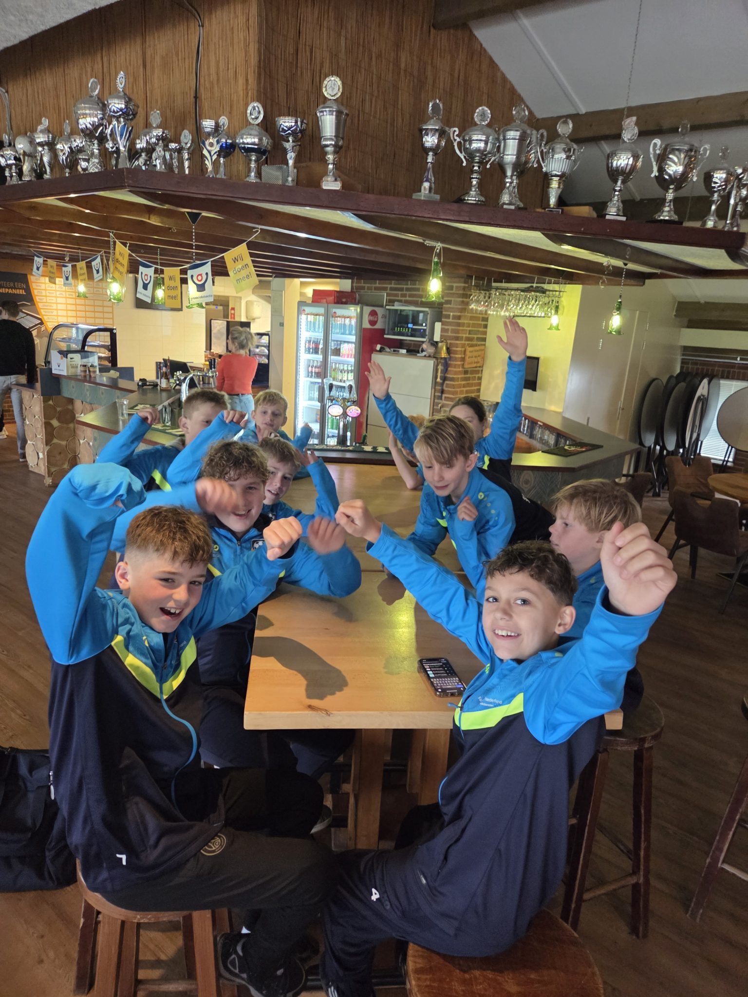 Na een feestje in de kleedkamer is het snel terug naar Zelhem om hier het feestje nog even voort te zetten en een lekker patatje te eten met zijn allen!